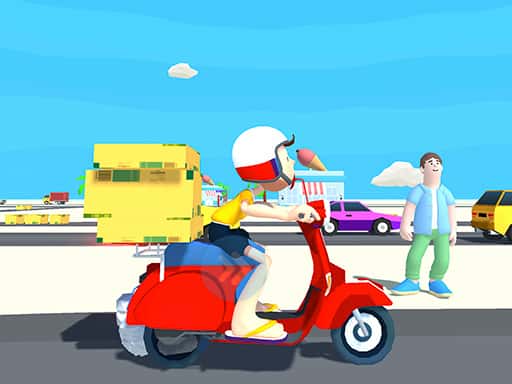 Vous déposez également des pizzas et d'autres colis à l'endroit désiré pour gagner de l'argent. Dans ce jeu, vous devez conduire votre moto avec prudence pour éviter les collisions avec les voitures sur la route.