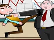 Ne te laisse plus maltraiter par un chef grincheux qui ne sait jamais reconnaître tes vraies valeurs et qui dit à longueur de temps que tu ne travailles jamais bien. Sors tes griffes pour riposter contre ses injures et donne-lui un coup aux fesses bien fort à chaque fois qu’il manifeste son mécontentement. Tu dois lui donner un coup de pied aussi fort que possible pour faire en sorte qu’il s’envole le plus loin possible avant d’atterrir sur le bitume.